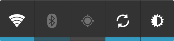 L'icona ON/OFF si applica (da sinistra) a Wi-Fi, Bluetooth, GPS, sincronizzazione e luminosità dello schermo.