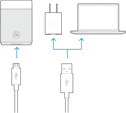 Connect the Power Pack Micro to a charger or computer. Charging from a standard charger takes about 90 minutes. Charging from a computer takes about 180 minutes. The status light flashes white while the Power Pack Micro is charging, and remains solid white when fully charged.